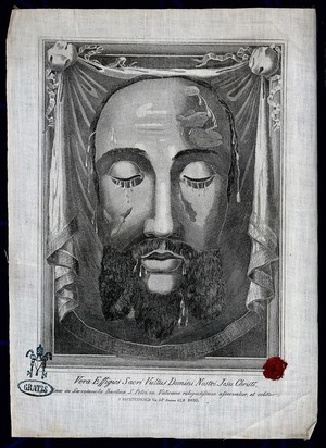 In 1849, at the time of Saint Pius IX, the Veil of Veronica was on display for veneration after Vespers during Lent. All of a sudden, everyone present witnessed a transfiguration: the Face of Christ appeared as though it was lifelike. It was also surrounded with a halo of soft golden light, while the Veil itself glowed with the divine light. The Pope ordered one of the Canons of Saint Peter to draw the Holy Face as it had appeared and to engrave it as an effigy onto linen cloths that would be touched to the original Veil of Veronica, making them precious relics in themselves. The Article as a framed photo in the sanctuary at St. Anne has the Pope’s Ring stamp on the front and on the back with its certificate of authentication. The photo features the stamp as a red wax seal. This relic is among the images that were actually created and touched to Veronica’s veil in St. Peter’s Basilica in the Vatican. The true effigies of the Holy Face are known to have been distributed for a period of about 75 years.